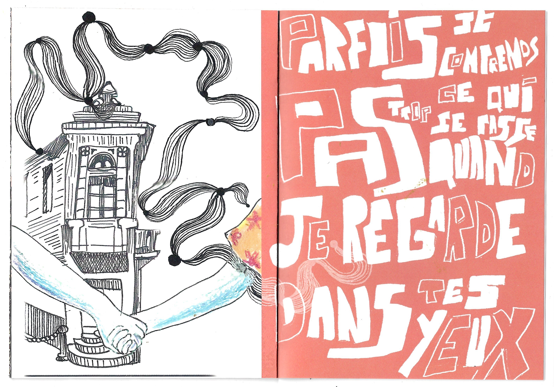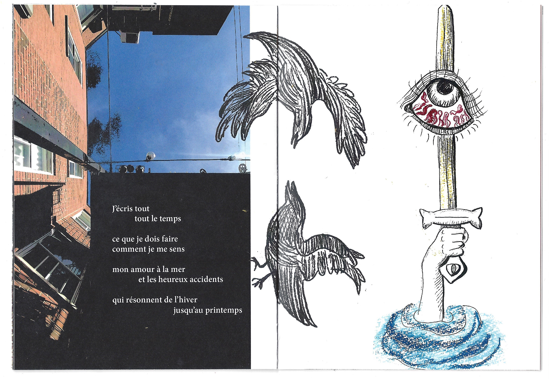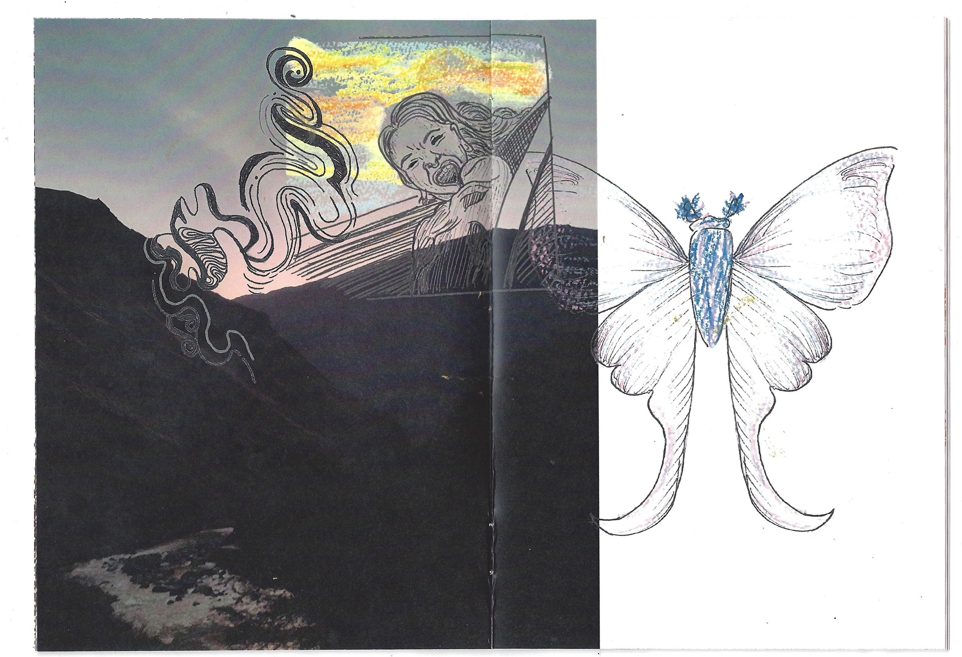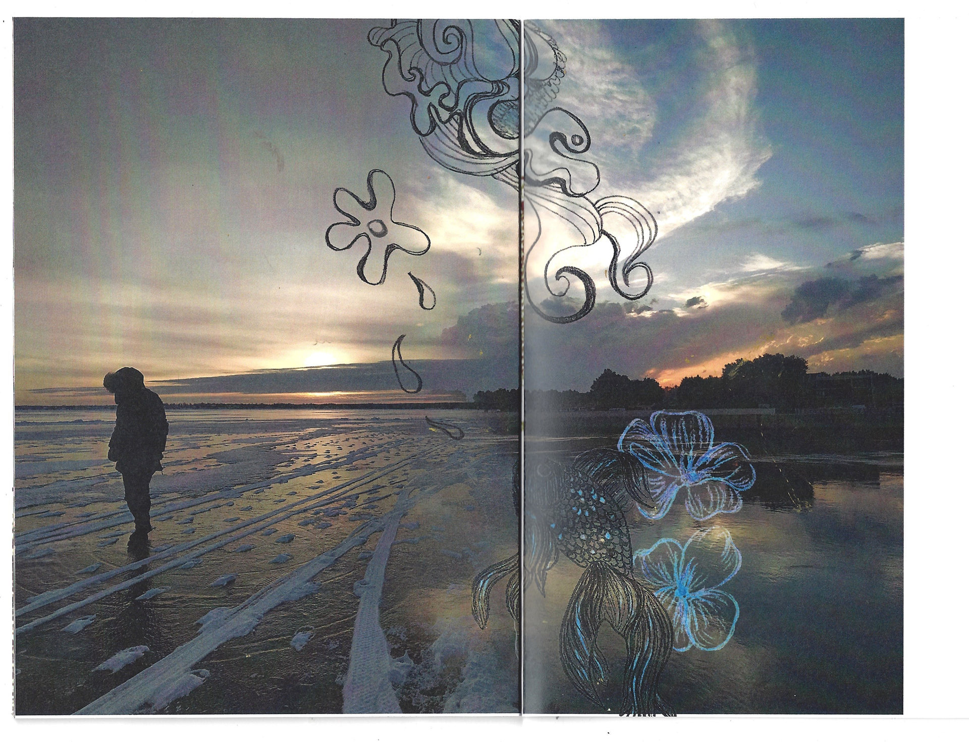 Où vont les dragons pour pleurer est un livret qui combine mise en page graphique, collection de photographies, dessins et linogravures faits à la mains. C'est un projet personnel qui visait à explorer le mélange de médiums afin de créer de nouvelles histoires, et de faire vivre des émotions aux personnes qui le liront.
